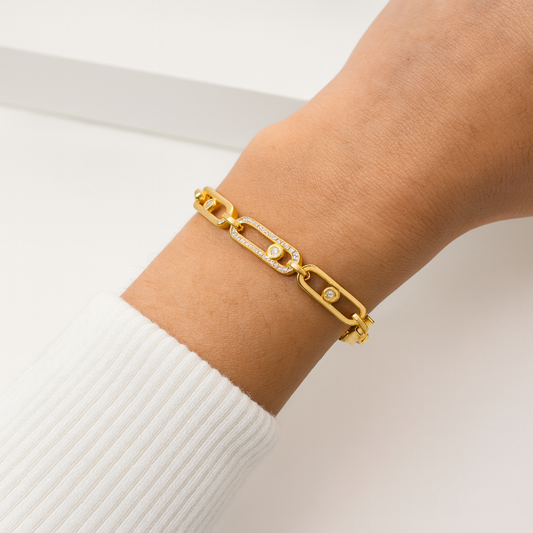 Luxe Goudkleurige Schakelarmband met Zirkonia